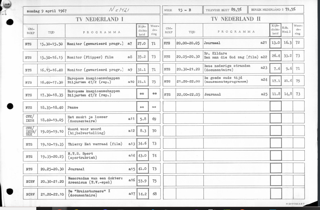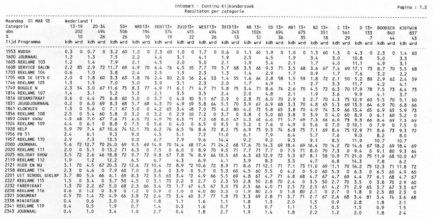 On the occasion of the 70th anniversary of television in 2021 we wanted to analyse viewing and listening figures to identify the most popular programmes. This, however, was impossible. First of all, it turned out that viewing and listening figures were not available for the entire period. In addition, within the period for which figures were available there were large differences in the data structure, and the manner in which viewing and listening was registered changed radically. (see Figure 7).