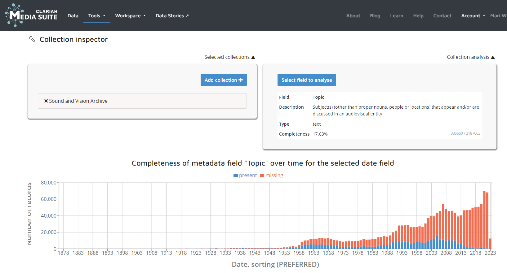 Figure 8 above is a screenshot of the Media Suite Inspect Tool that clearly shows how the number of items for which the “subject” metadata field is filled in drops over time.